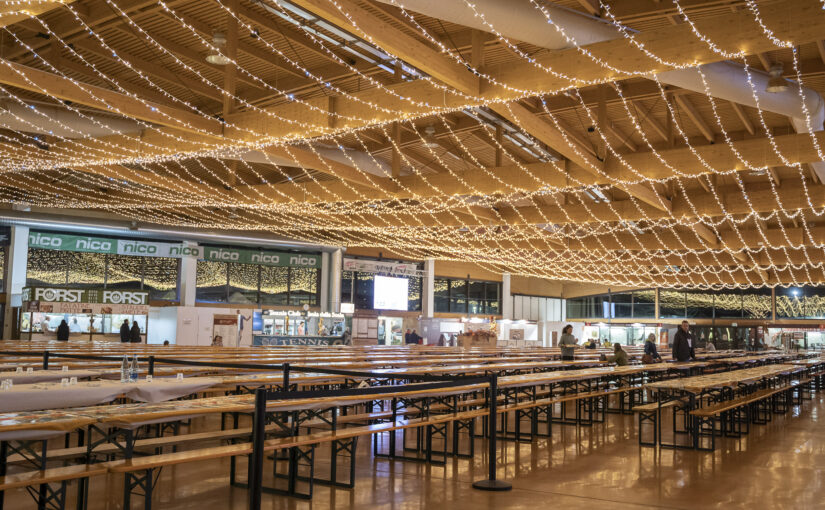 Il padiglione fieristico è dotato di una cucina professionale a vista e una sala ristorante che è possibile personalizzare grazie a delle pareti mobili.Ideale anche per ospitare convention e riunioni, al suo interno ci sono le sedute e un’area relatori, il palco e un video-proiettore.
